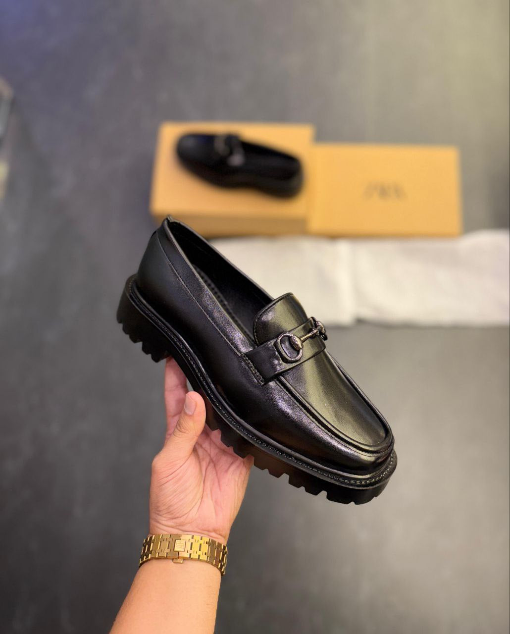 Men's Luxury Chunky Black Loafers with Signature Buckle - Showroom Quality