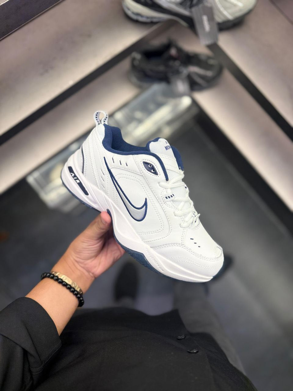 **NEW IN THE HOUSE 🏠 | Nike Air Monarch IV** Get the perfect blend of retro style, comfort, and durability with the **Nike Air Monarch IV "Snow Day"** trainers. This iconic, chunky sneaker features a clean white leather upper contrasted with navy accents, giving it a cool, classic look perfect for everyday wear. This is a **Top Showroom Quality** item, delivering a mirror copy look and feel that rivals authentic store quality. **Key Features & Quality:** * **Classic Comfort:** Features the well-known lightweight cushioning for all-day support. * **Clean Colorway:** White leather upper with sharp Navy blue detailing on the swoosh and collar. * **Retro Look:** The famous chunky dad shoe silhouette is back and pairs perfectly with casual wear. * **Showroom Quality:** Expertly finished to provide a luxurious, durable, and comfortable fit. * **Free Shipping:** Get this top-quality pair delivered right to your door with **FREE SHIPPING** included!